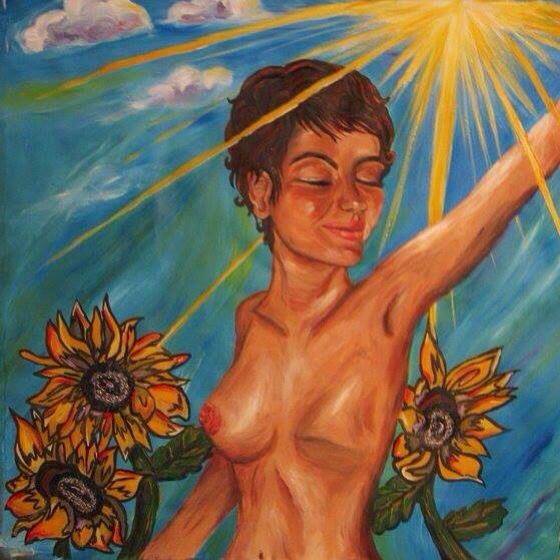 This painting I was asked by my god mother to paint. We had talked about it quite sometime ago. And then my Uncle brought it up and asking me to do so for her 50th birthday party. She’s a breast cancer survivor hence the one breast in the painting. I was a difficult piece but so very cathartic since we have had to deal with breast cancer in my family more times then I like to count. I feel it really shows the freedom that comes along with life after trauma the freedom of being. Just being… Doing as you please and never taking anything for granted. Wonderful lessons I have learnt from these amazing women in my life.