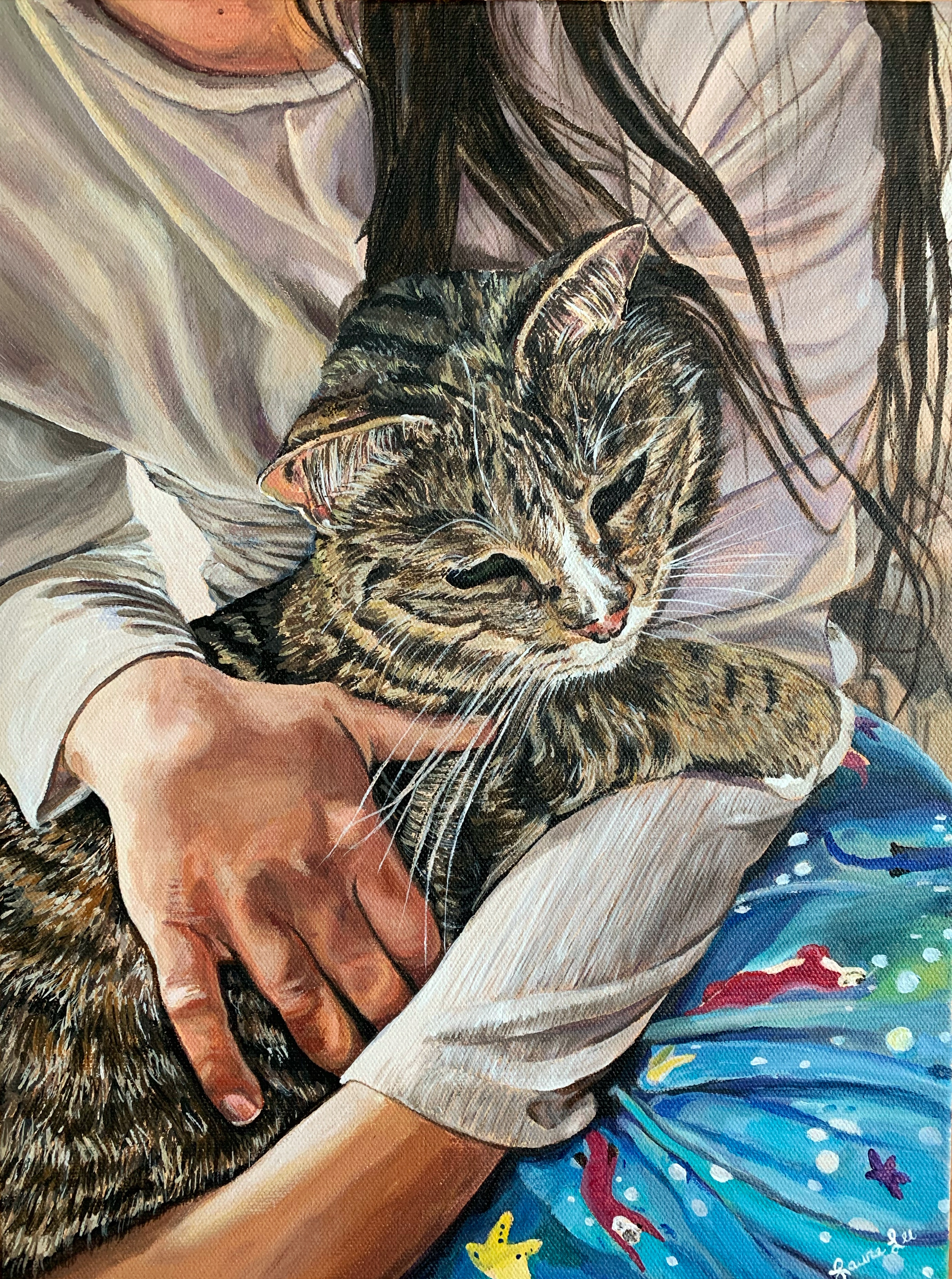 This little one and I share a bond that I would never have wanted to share with anyone. We both lost our furry loved ones at the time of our birthdays (both at the same age and everything). When I read the message from her Mama about the tribute piece, it made me weep knowing exactly how she must feel. Tigger and I were so immensely bonded to one another, she was some of my first and favourite memories. They bring such love and light to our lives, some of our first best friends who show such unconditional love our Furry family members. I am really proud of how this piece turned out. Put so much heart into it.